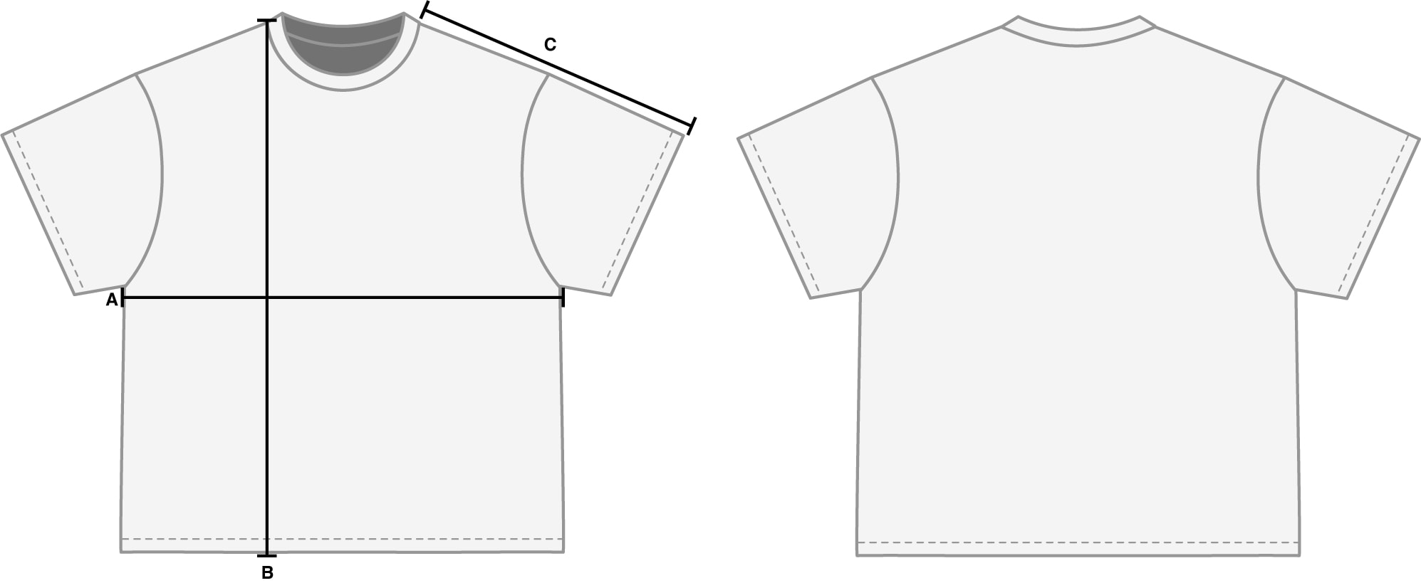 | Tamanho | Largura (A) | Altura (B) | Manga (C) |