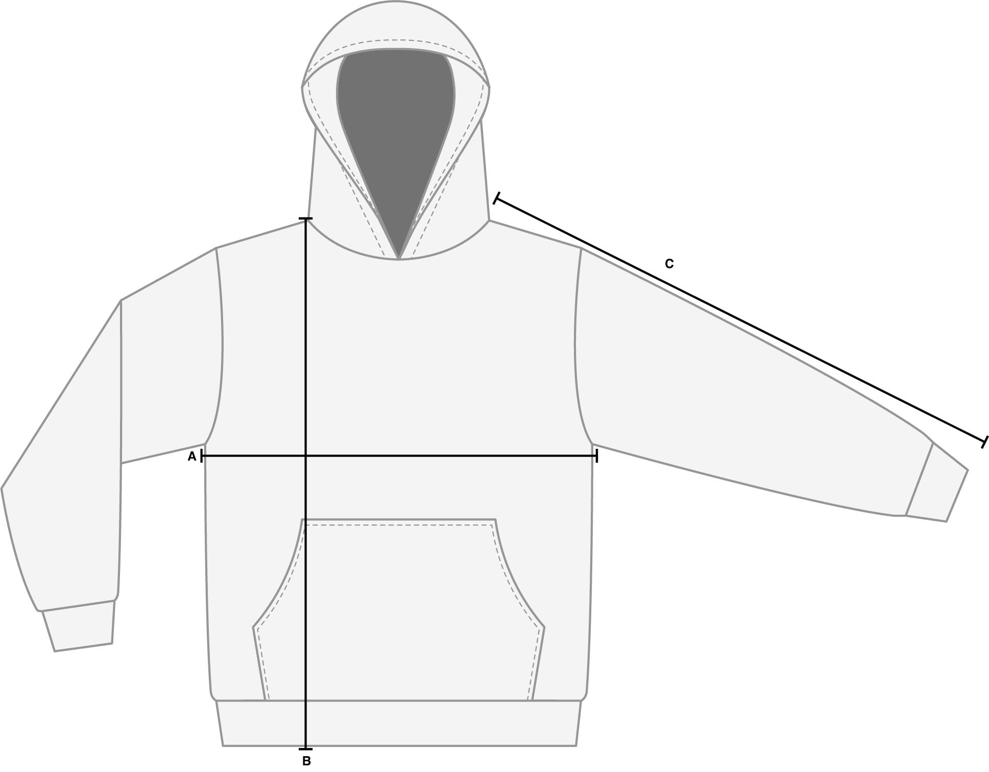 | Tamanho | Largura (A) | Altura (B) | Comprimento da Manga (C) |
